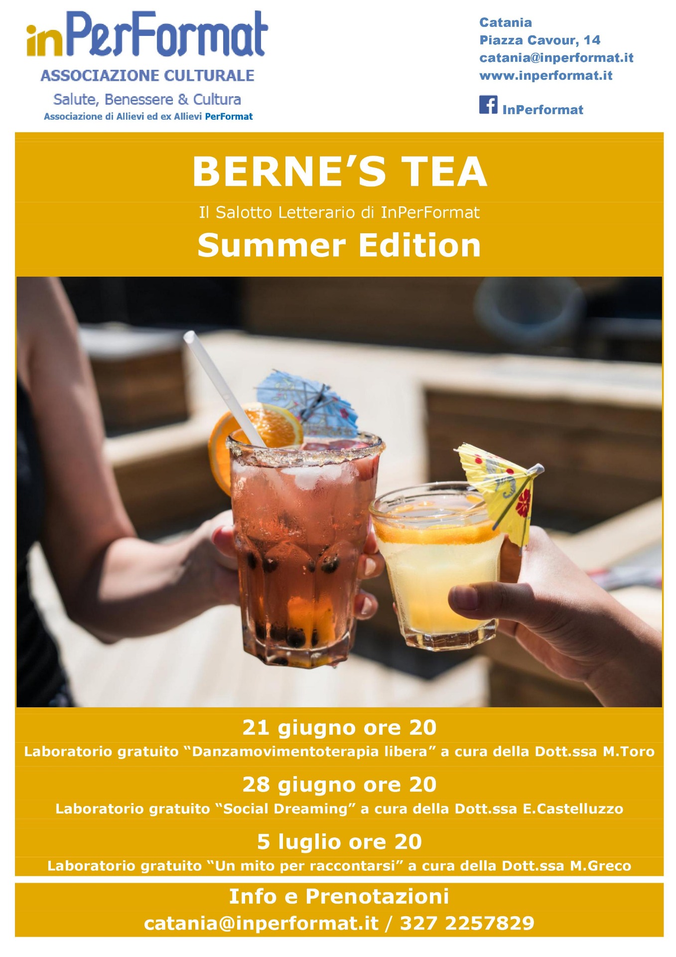 Dopo il grande successo del Berne's Tea, Il salotto letterario di inPerFormat, arriva la Summer Edition del nostro salotto letterario con un ciclo di laboratori gratuiti.